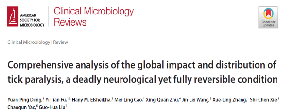 本网讯(动物医学院 李小英)近日,动物医学院刘国华教授课题组在国际微生物学领域知名期刊Clinical Microbiology Reviews(SCI,中科院大类1区Top,IF5y=33.8)在线发表了题为“Comprehensive analysis of the global impact and distribution of tick paralysis, a deadly neurological yet fully reversible condition”综述性论文。