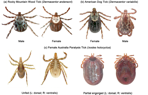 蜱瘫痪是由某些蜱的唾液腺分泌的神经毒素引起的一种潜在致命疾病,经蜱叮咬传播。目前,已有多个国家报告了蜱瘫痪病例,特别是在美国、加拿大和澳大利亚,这一疾病导致了严重的经济损失并引发了公共卫生问题。蜱瘫痪可全年发生,但春夏季节为高发期,主要临床症状为上行性瘫痪。目前已知75种蜱能够引起此病,其中大多数为硬蜱。尽管蜱瘫痪的历史已有百年之久,但尚无有效的疫苗或治疗药物问世。